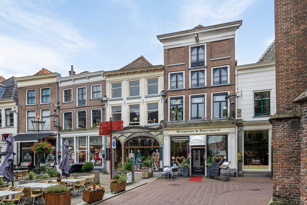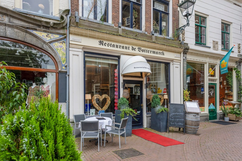 De Bottermarck straalt niet alleen van binnen verfijning en gastvrijheid uit. De buitenkant van dit indrukwekkende rijksmonument vertelt een verhaal van eeuwenoude charme en geschiedenis. In de Middeleeuwen diende het pand als een levendig handelshuis. Een plek waar bewoners en kooplieden uit alle windstreken samenkwamen om goederen te verhandelen en verhalen uit te wisselen. Al sinds die tijd is De Bottermarck een plek waar mensen op en aan lopen, dit is niks veranderd. De karakteristieke voorgevel, rijk aan historische details, weerspiegelt de status en gastvrijheid die dit pand door de jaren heen heeft behouden. Met zijn hoge ramen en statige lijnen straalt het een gevoel van openheid en toegankelijkheid uit. Een uitnodiging die nog steeds voelbaar is voor iedereen die langs dit restaurant wandelt.